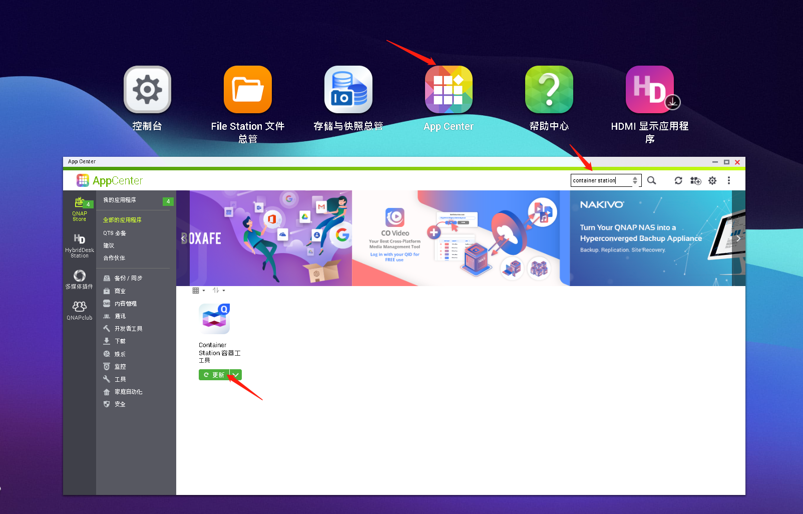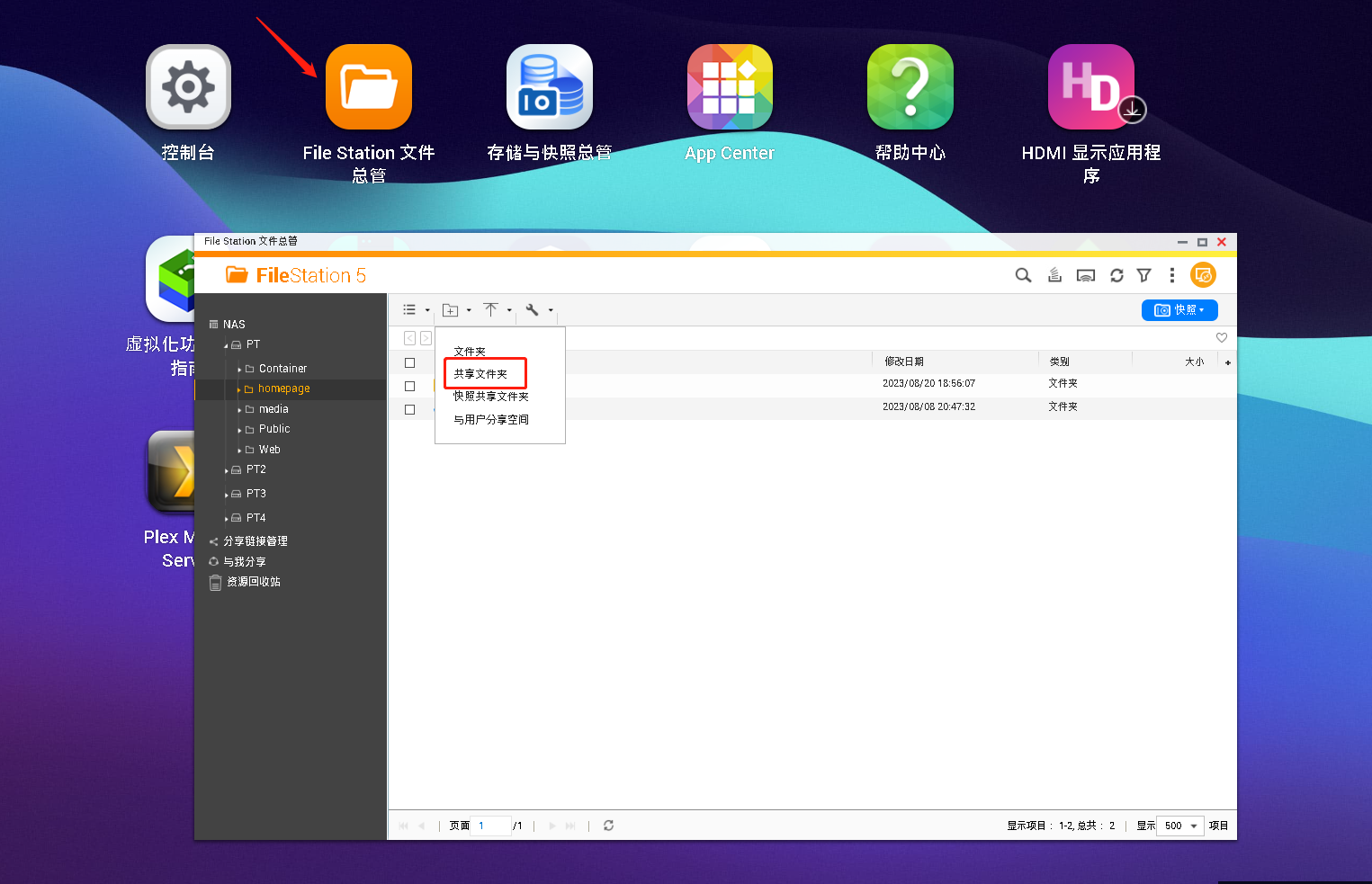 先在威联通的webui上安装Container Station,安装期间可在File Station文件总管中提前创建好homepage的共享文件夹
